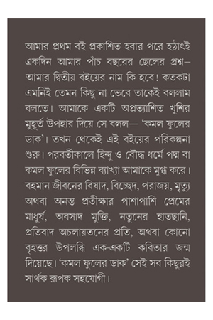 , বহমান জীবনের বিষাদ, বিচ্ছেদ, পরাজয়, মৃত্যু অথবা অনন্ত প্রতীক্ষার পাশাপাশি প্রেমের মাধুর্য , অবসাদ মুক্তি, নতুনের হাতছানি, প্রতিবাদ অচলায়তনের প্রতি, অথবা কোন বৃহত্তর উপলব্ধি এক একটি কবিতার জন্ম দিয়েছে।
